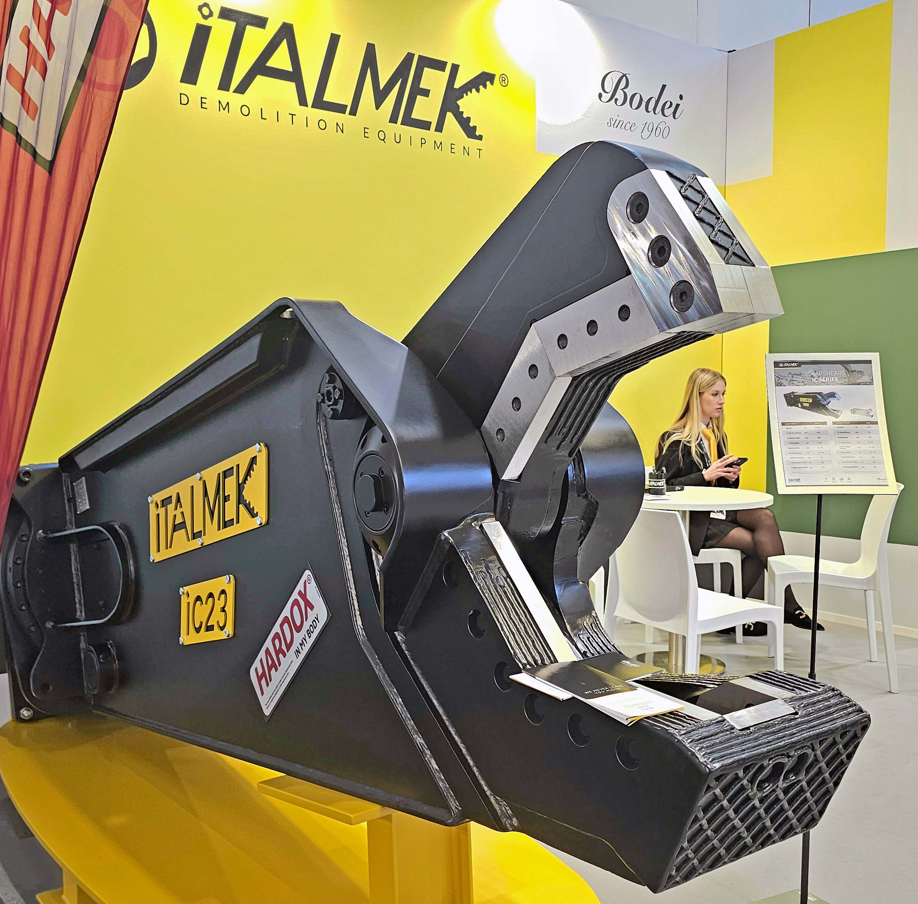 IC23 Schrottschere ist für den Abriss von mittel/großen Metallelementen. Die Scher IC23 hat ein Gewicht von 2.300 kg und einer Mündungsöffnung von 550 mm. Mit Hydraulikdruck auf 340 bar eingestellt, seine Schnittleistung ist genug, um eine 70 mm Vollrundstab geschnitten.